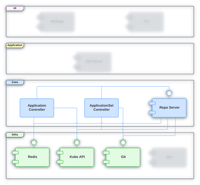 API Server : Argo CD의 중앙 허브이자 외부 인터페이스로, 사용자 요청을 처리하고, 인증 및 권한 제어