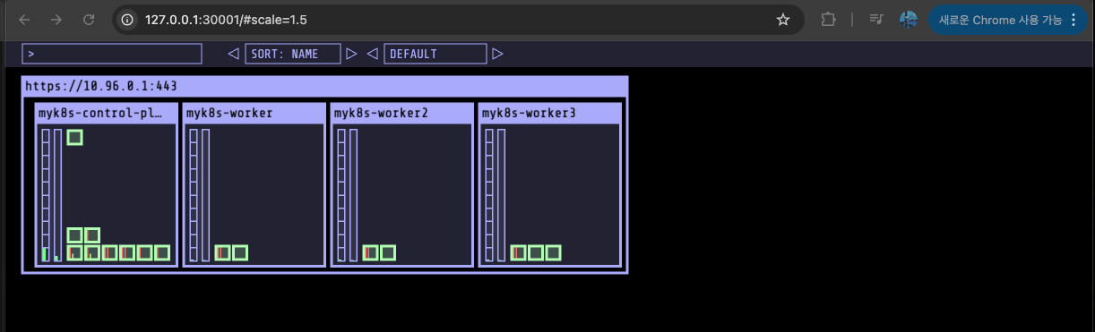 helm install kube-ops-view geek-cookbook/kube-ops-view --version 1.2.2 --set service.main.type=NodePort,service.main.ports.http.nodePort=30001 --set env.TZ="Asia/Seoul" --namespace kube-system