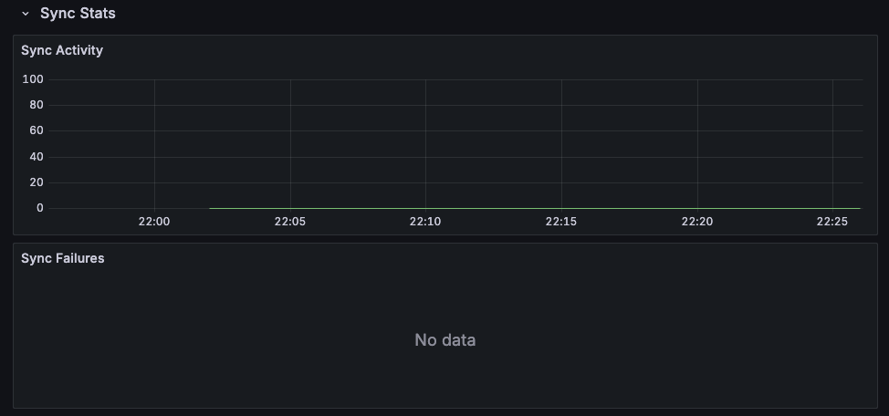 - Sync 실패율 (argocd_app_sync_total): 성공한 Sync 횟수 대비 실패한 Sync 횟수가 증가하는지 확인해야 합니다. 이는 배포하려는 매니페스트에 문제가 있거나, 대상 클러스터에 권한/제한 문제가 있음을 나타낼 수 있습니다.