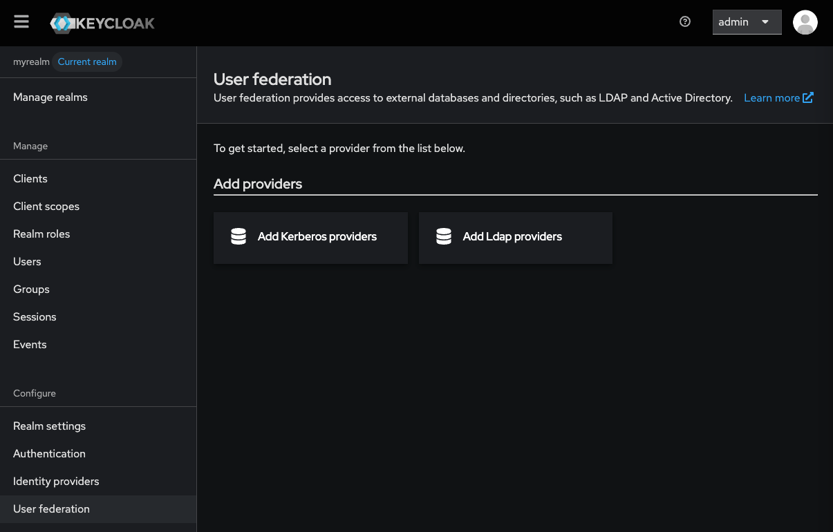 또한, 유저 페더레이션 기능을 제공하여 존재하는 LDAP 또는 Active Directory 와 연계하여 사용이 가능합니다.