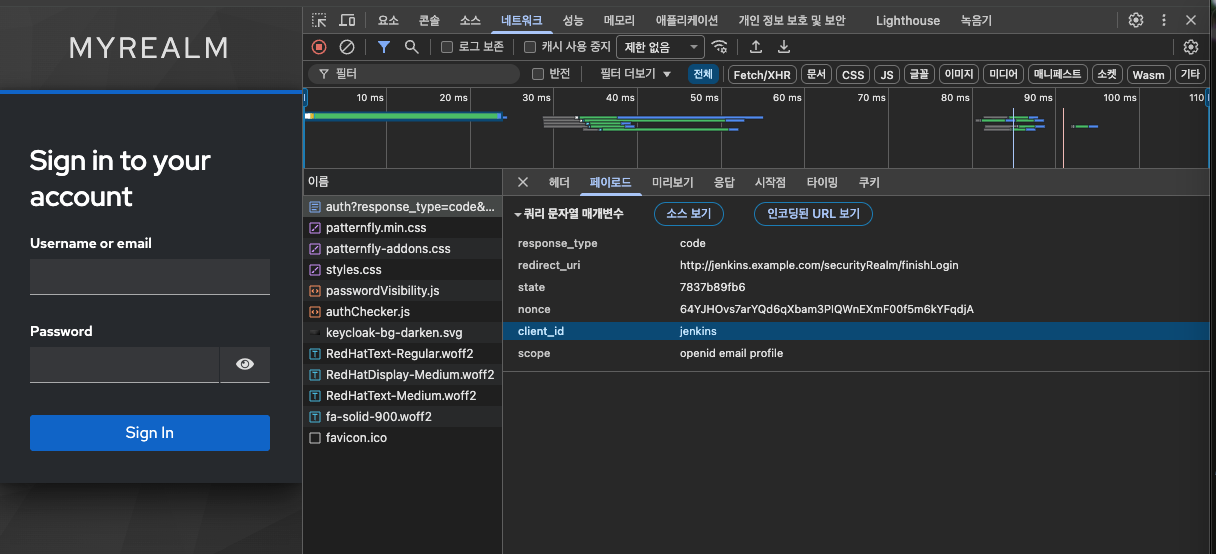 - 애플리케이션(ArgoCD or Jenkins)은 인증 요청을 준비하고 사용자 브라우저를 Keycloak으로 리디렉션하도록 요청합니다.
