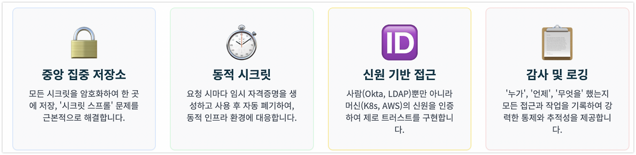 - 1. 시크릿 스프롤(분산) 문제 해결 → 시크릿 중앙 저장소