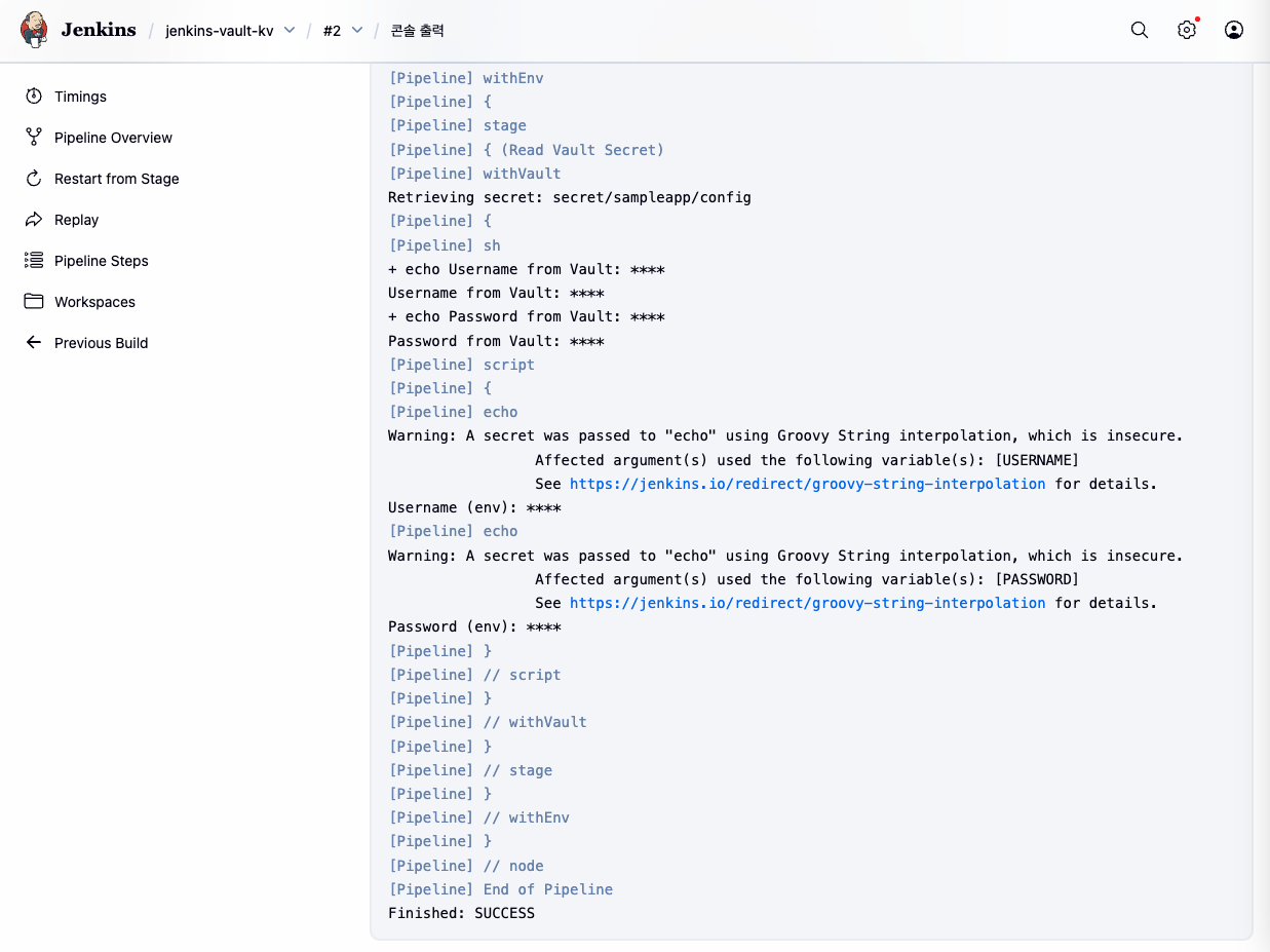 echo "💥 Pipeline 실패! Vault 로그나 네트워크 설정을 확인하세요."