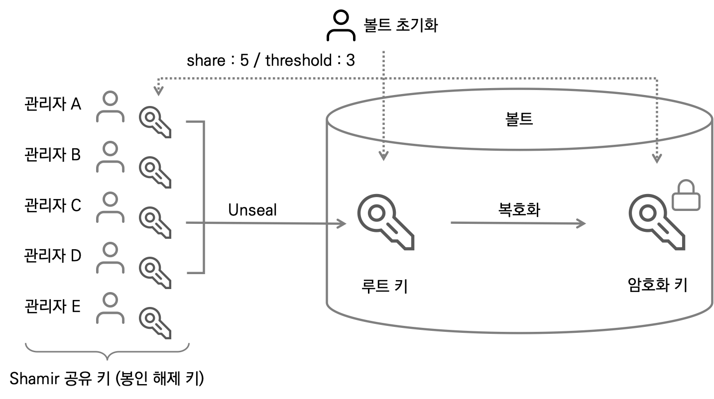 Hashcorp에서 개발한 시크릿 중앙 관리 솔루션으로, 신원 기반(Identity-based)의 시크릿 및 암호화 관리 시스템입니다.
