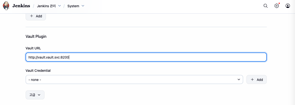 // Jenkins 파드 사용 시 : http://vault.vault.svc:8200